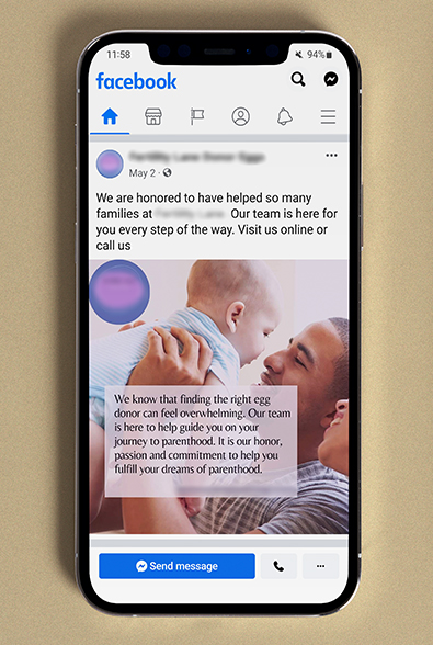 We can create marketing campaigns that target potential patients who are actively seeking anything from IVF or egg freezing to genetic testing, egg donation and surrogacy. In this complex and sensitive space, it's important to partner with a team that understands both the medical and emotional components that your potential patients require. We've created campaigns for practices that are seeing more new patients than ever before.